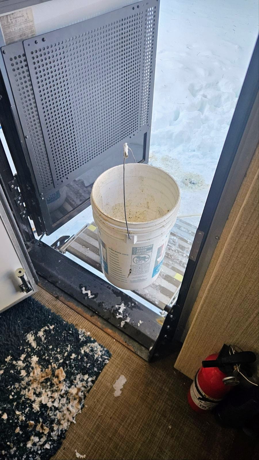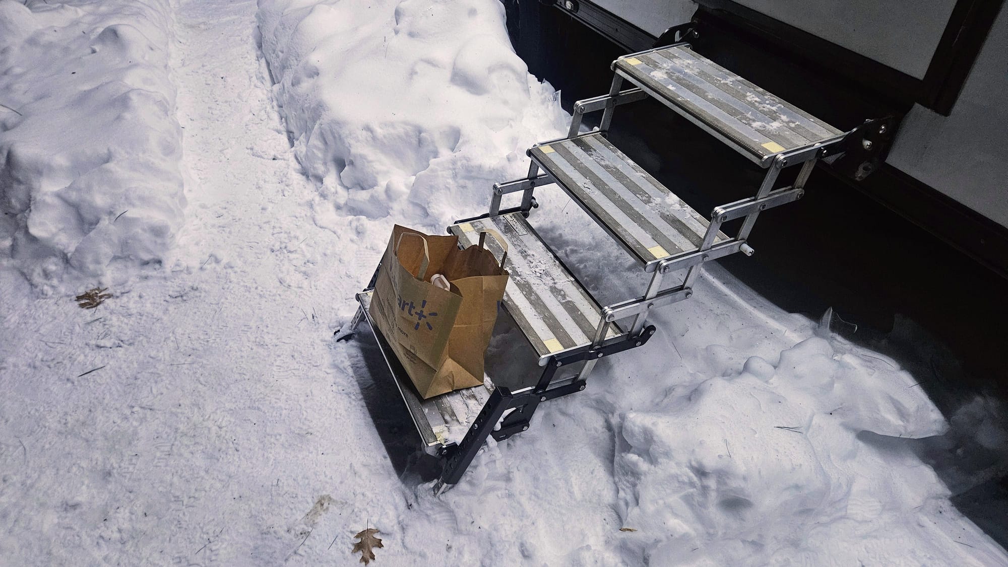 This appointment ended in a better place than it started. We demolished most of our pyramid, and our tanks, both black and gray now, were empty enough to buy us several days of use. We still needed to be diligent, though, limiting the solids we put down the toilet and closely monitoring its functioning. We planned for James to come back the following week, when we would hopefully have a big piece of the puzzle that's been missing: above-freezing temperatures! This would mean more ability to keep our equipment thawed and use more water to flush the tank. We kept our fingers crossed that this encouraging forecast would materialize.
