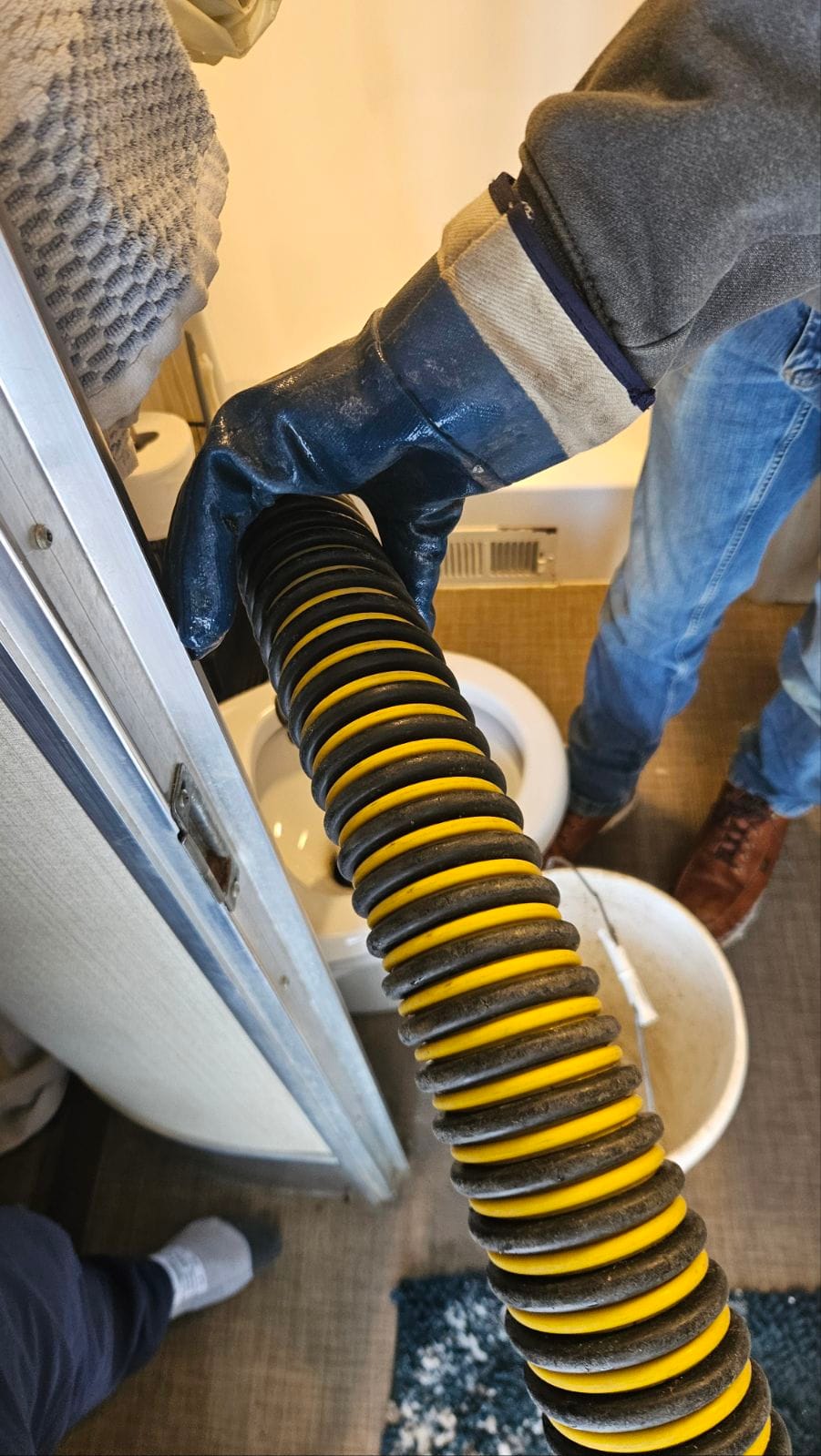 A few days later, James returned, and while temperatures weren't above freezing, the sun was shining. Already a step in the right direction! Just as before, we had an hours-long thawing process, starting before the pumpout appointment and continuing once James arrived. This time, a lump of ice formed in our sewer port, obstructing the flow out from the tank. James was getting some flow, but it was slow going.