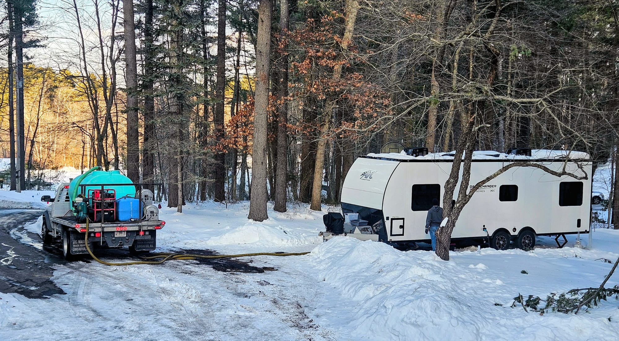 The pumpout guys have really been put through the ringer this year. Never before have they needed to deal with so much freezing and all the equipment issues that happen as a result. We got to hear horror stories far worse than ours, as James shared the tales of winter pumpouts. At the very least, we try to bring our knowledge and resources to make their jobs a little easier. But this? This was beyond our capacity.