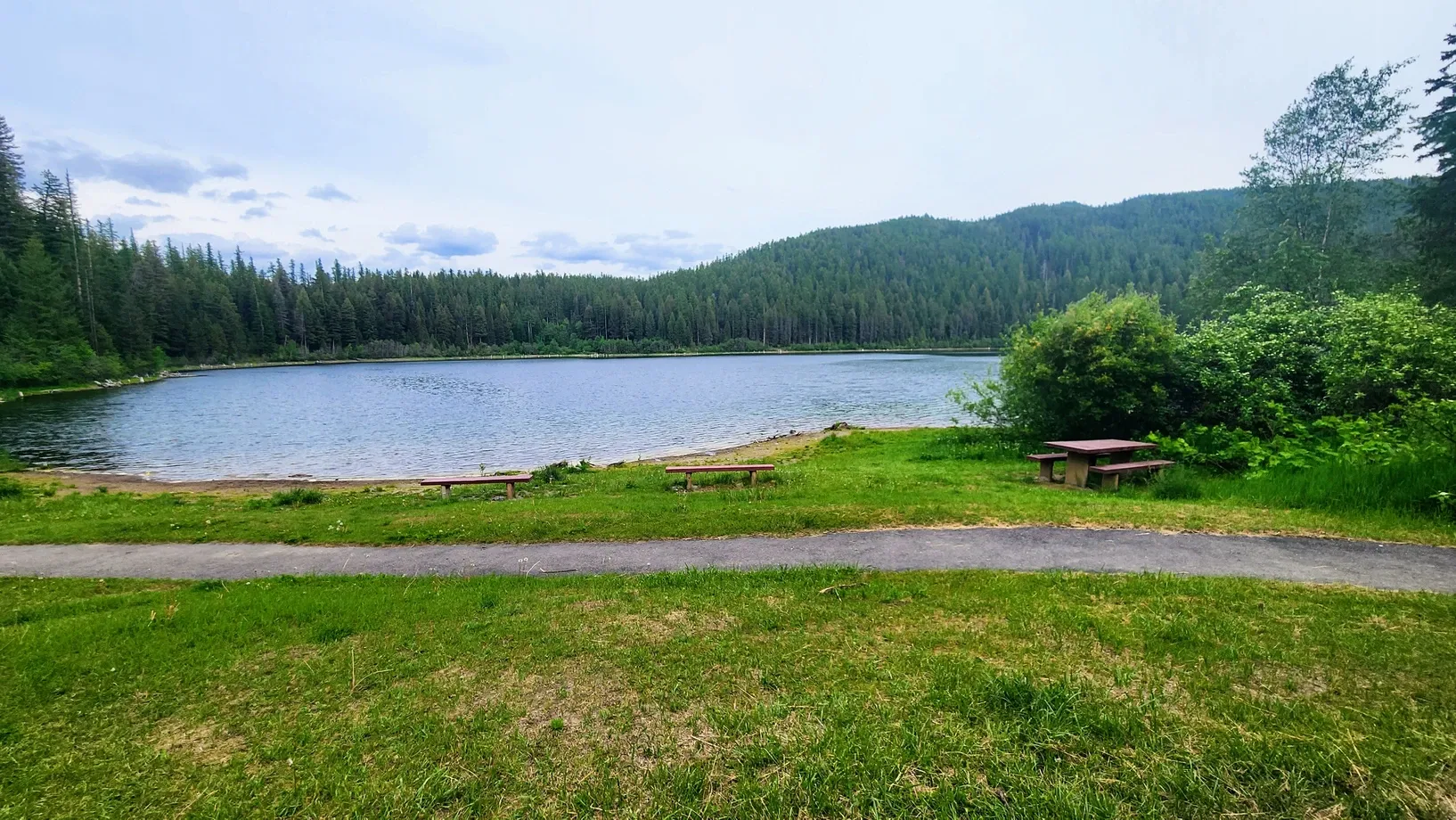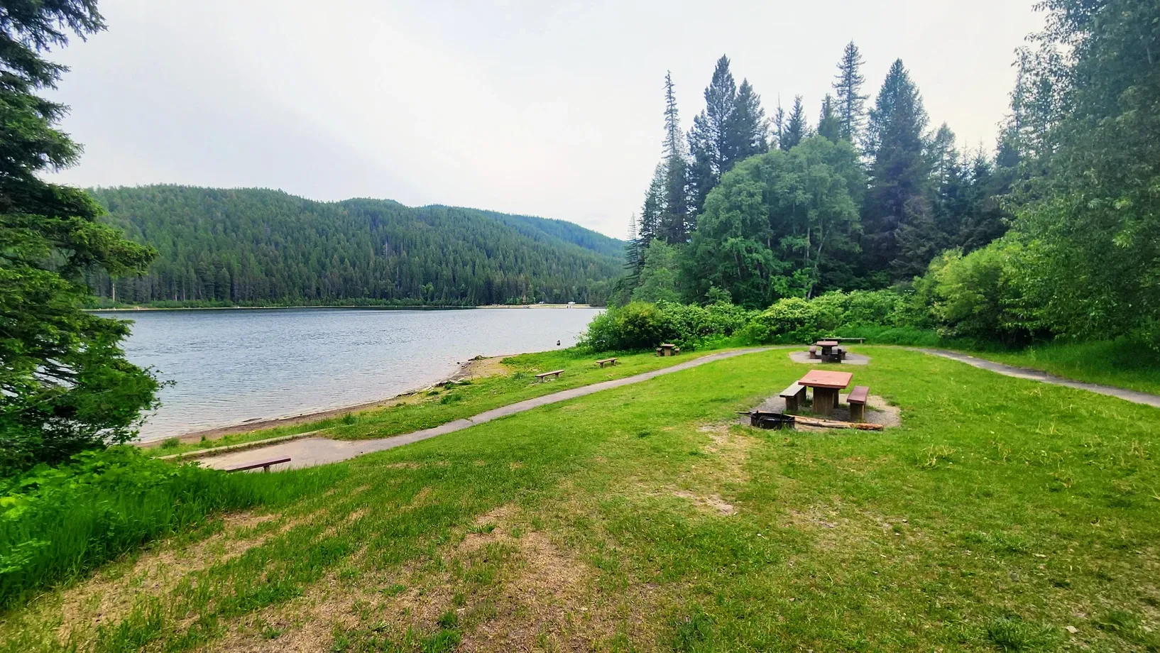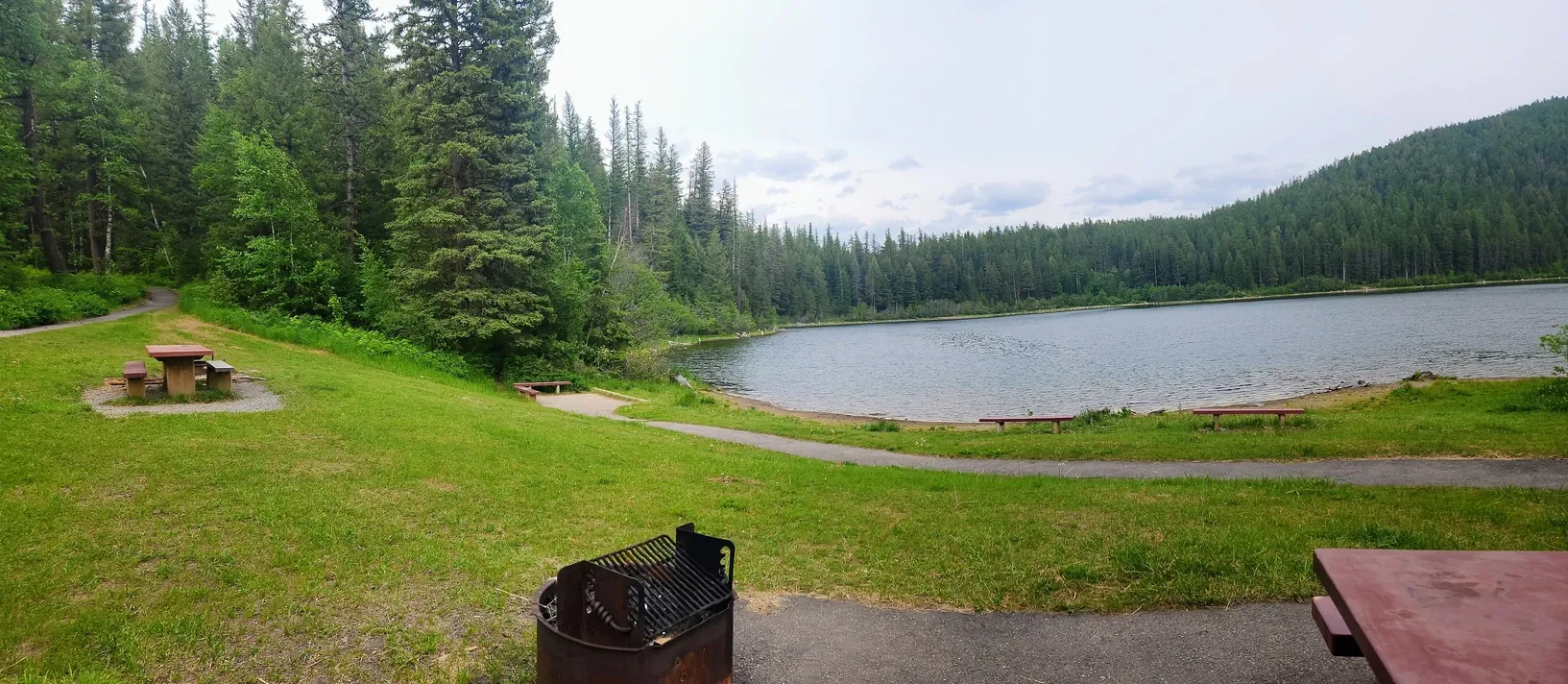 Lion lake is a small recreation lake in the Bob Marshall wilderness in Flathead National Forest. It has two picnic areas, one on the southside and one on the north. We enjoyed a peaceful picnic on the northside. Not only were there plenty of picnic tables, but some even had firepits. After our picnic, we did a short hike on the North Lion Lake Trail, which we thought would just be a mile or so, but once we got further into the woods, we noticed more trail offshoots that didn't exist on All Trails, so you can probably hike a lot further if you'd like. The part of the trail we took gave us glimpses of the lake through the trees, and when we hiked in early June, the wildflowers were blooming. There were also some fun little stream crossings. Feel free to bring your floats, paddleboards, or even your rubber ducky to the lake too! Just be sure that no ducky is left behind, or else he might end up living the rest of his days in a much colder bubble bath than he's used to.