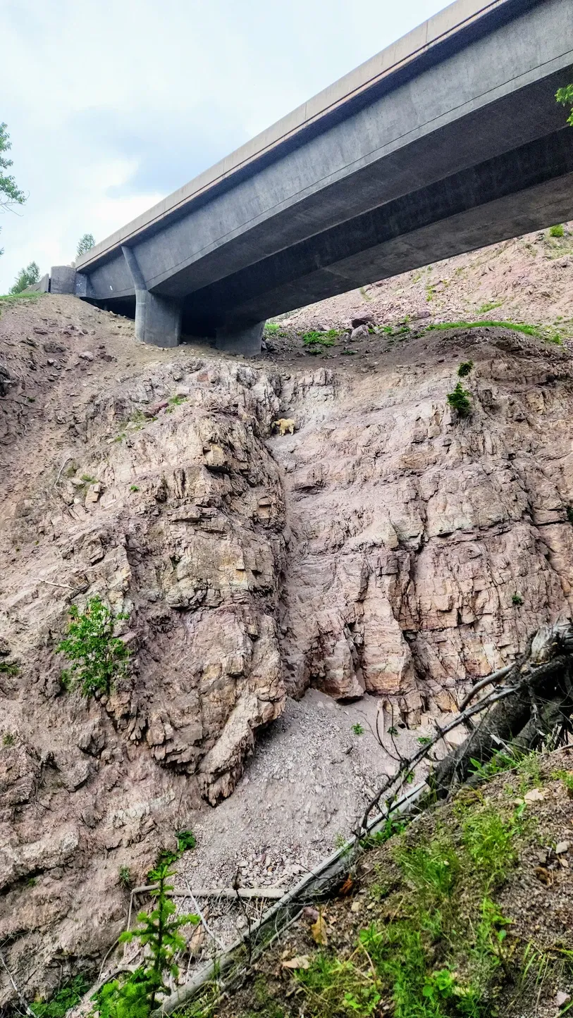 The Goat Lick Overlook was built to try and keep wildlife off the busy main road. Instead of crossing the street, the animals would now be able to stay underneath an overpass. The area has a lot of rocky layers and dirt hills leading down to a gulch, and the rocks contain minerals that have run-off from the nearby Flathead River, resulting in a salty taste that the animals enjoy. It's said that over 100 mountain goats inhabit this area in the warmer season, when they seek out these salty snacks after coming down from the less mineral-rich upper mountain peaks. Other animals can be spotted here as well, including deer and bears.