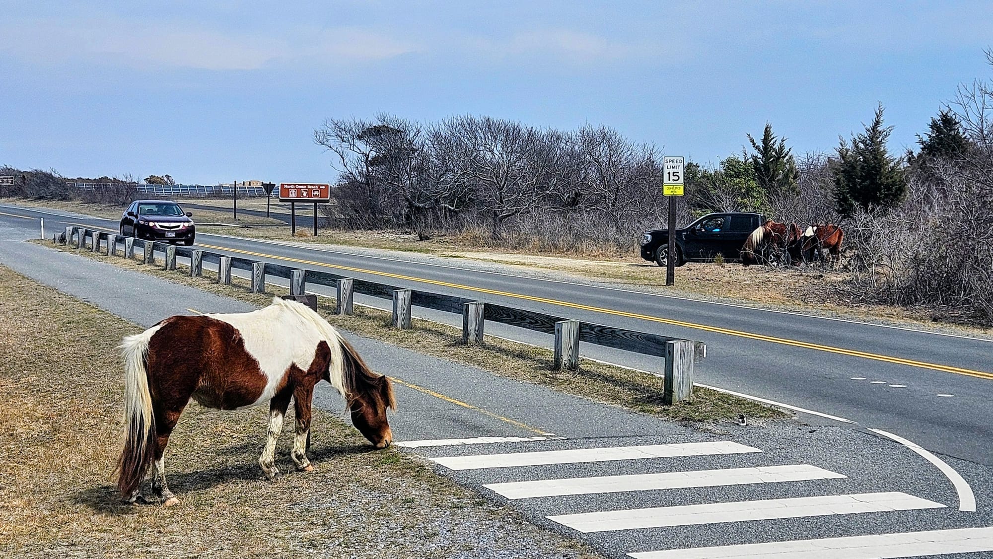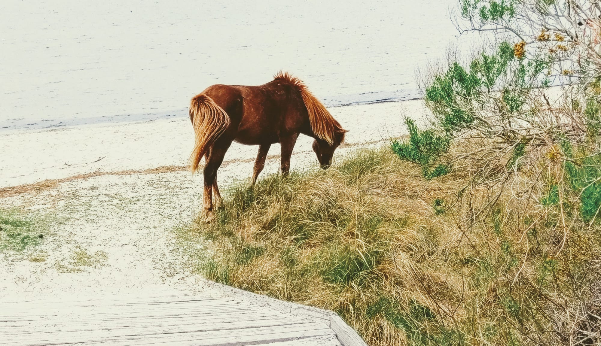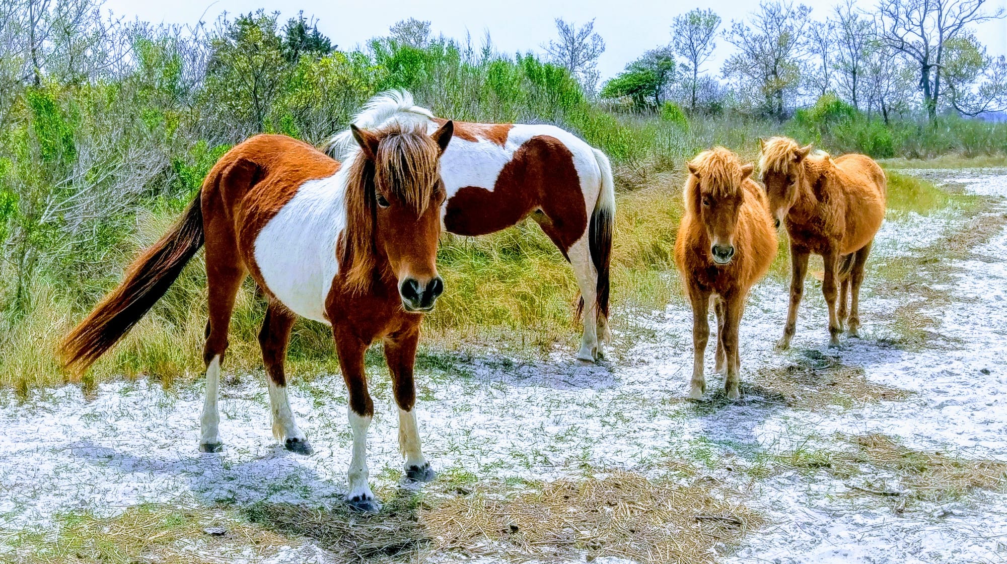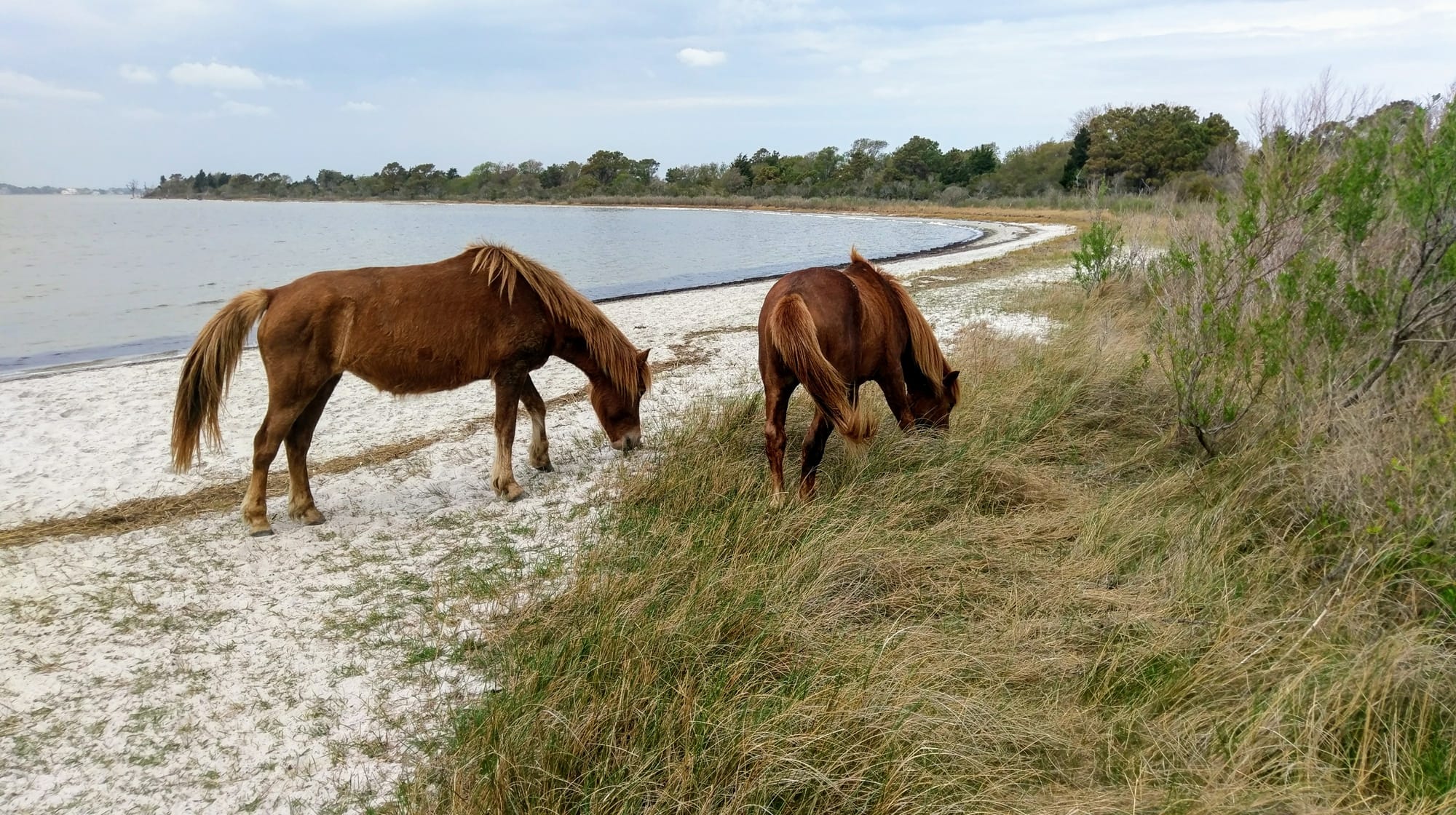 In 2017, we stopped in Assateague on our way to NYC from Virginia Beach. Told you we moved fast back in those days. We had no idea if we would even see any horses. It's a rather large seashore. Do the horses stay away from people, or do they mingle right out in the open? We got our answer pretty quickly. Some short walking paths led to some of the most beautiful coastal views, but also to groups of horses feeding by the water. To this day, I still marvel at some of the photos I took with my old digital point-and-shoot camera.