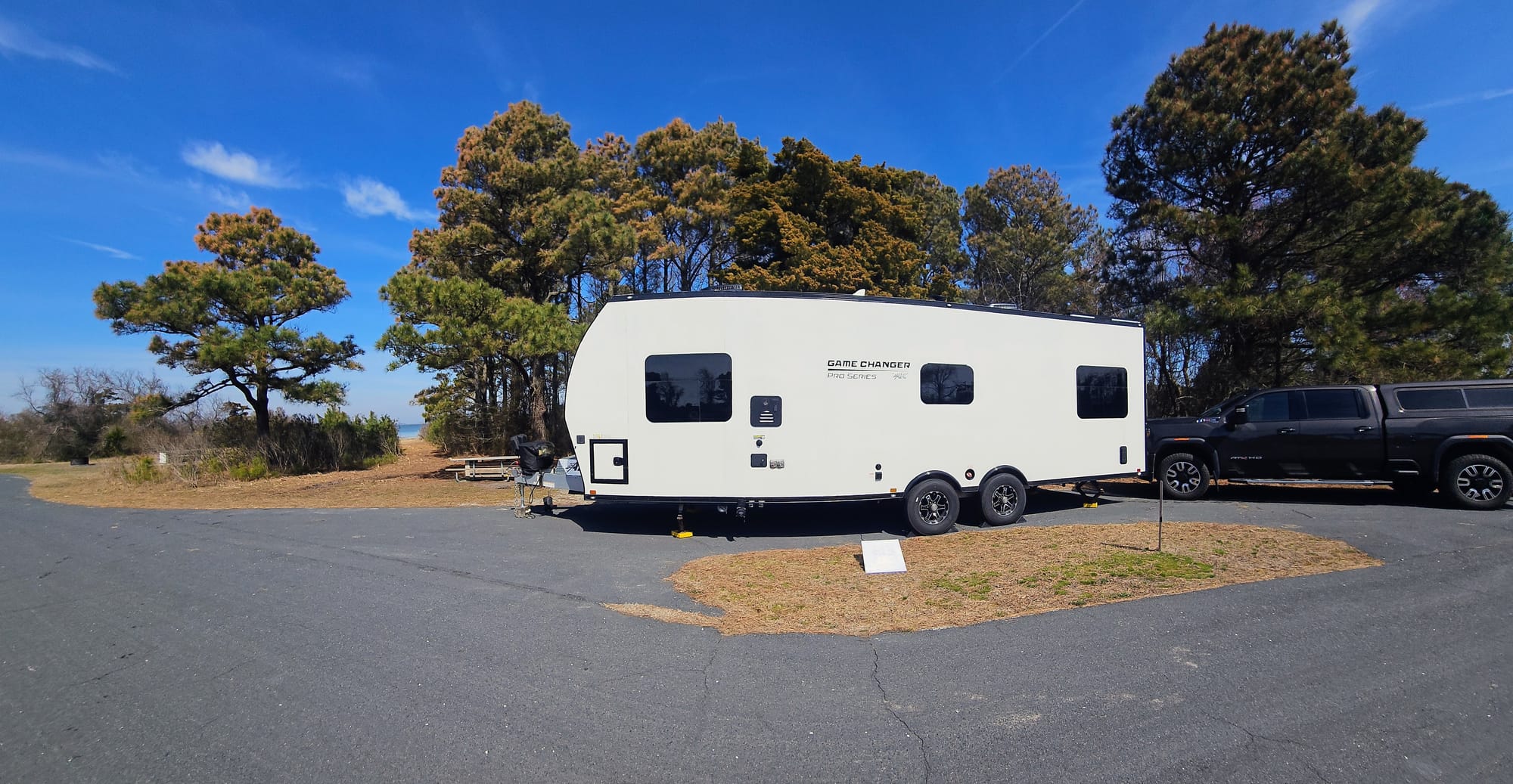 In retrospect, that might have been a bit too much to bite off. We ended up skipping dry camping because our water pump had died, so we needed water hookups everywhere we went. But overall, we were just more comfortable with more hookups and easier terrain back then. So we waited for the right time, and this year was perfect. We launched back on the road later than ever, which meant we could make reservations for a campsite at Assateague right when their system begins requiring them for the season. But, the island would still be quiet. We'd have weather too chilly for the beach, but perfect for our nature walks, which is what we really care about. And now, we have mods that make dry camping a breeze, like our solar setup and hefty inverter.