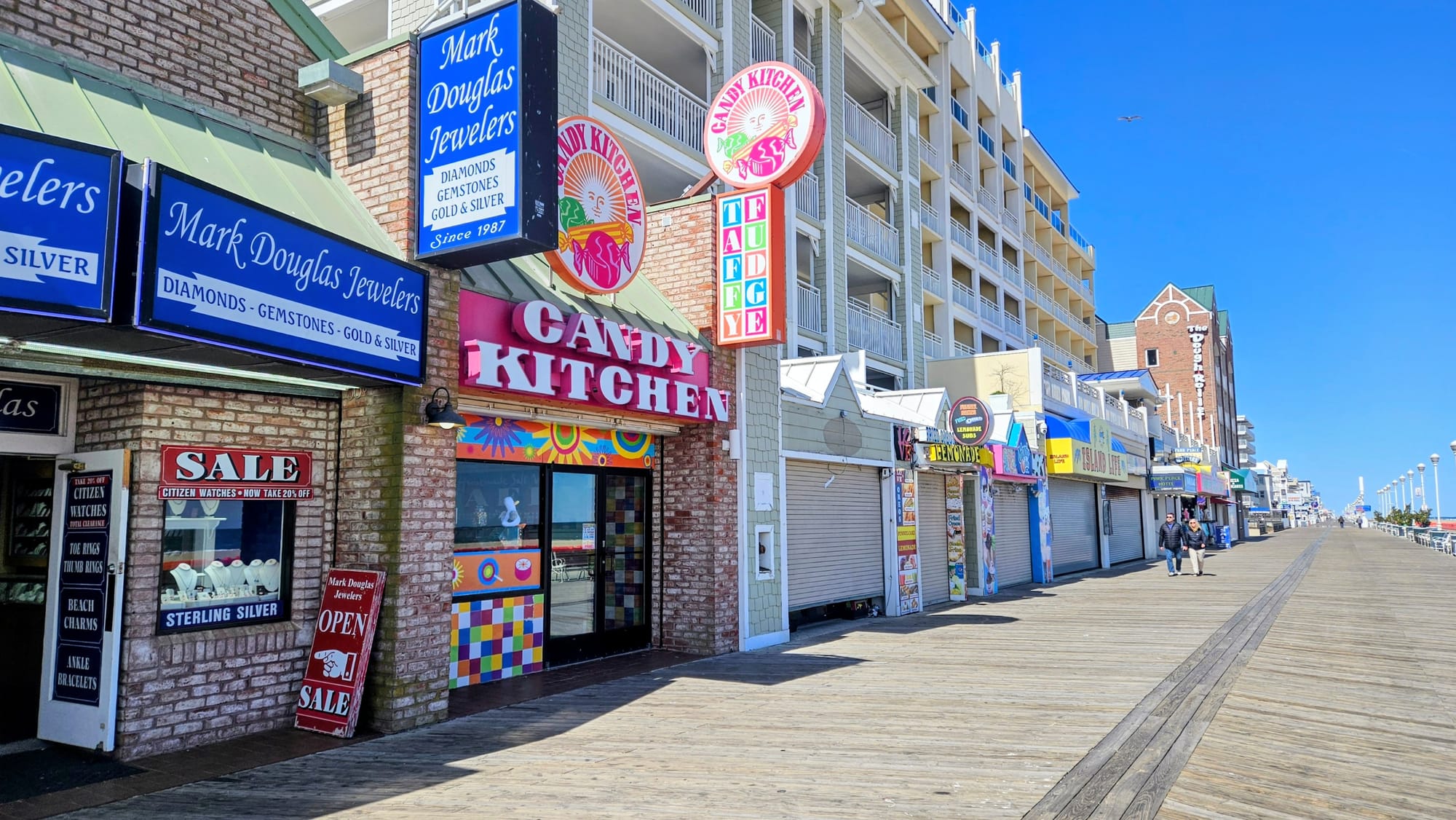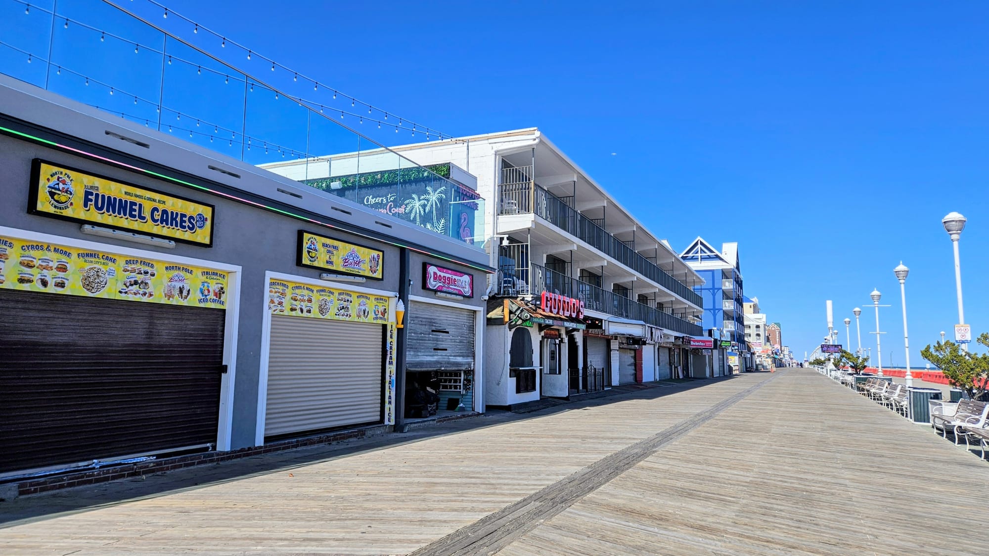 Spending multiple days at the park gave us the time to venture out further. One day, we decided to take a drive up to Ocean City, the oceanfront town north of the island. We somehow missed the memo that Ocean City was a quintessential kitschy boardwalk town, until we saw a Kara and Nate video where they camped at Assateague. We're fans of the kitsch and thought it would be a nice change of scenery to get our walk in. Because it was March, most of the vendors were closed, as were the amusement rides, but we were there for the exercise and ocean views anyway.