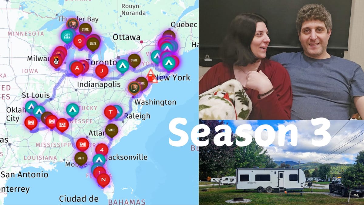 Last year, we released our video during a very difficult liminal time in our travels. We had just bought land in New Hampshire, the state we always planned to one day settle down. The land purchase set us on our journey towards the finish line of full-time RVing, but we still had a ways to go. We wouldn't be entering the planning/building process for quite a while, and so in the meantime, we decided to continue traveling. We expected things to not change much, except that, upon returning to New England, we would now have 2 home-bases: my parents' yard and our land. Then, in the middle of our holiday stationary time, we lost a member of our travel family, our cat Lily. The emotions of her passing were still very raw during filming, and in the video, we announced that we would be delaying our Season 4 launch to give ourselves time to grieve.