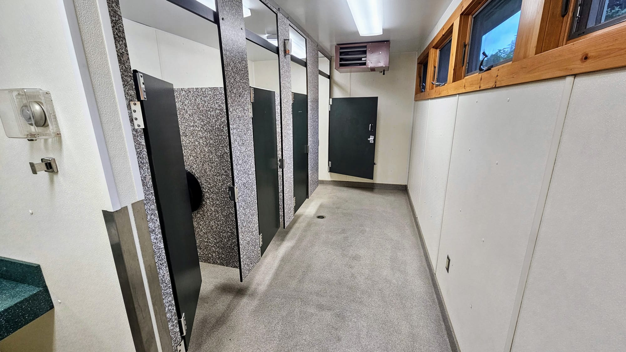 While the campground does have lakefront sites, they book up far in advance. Not only do they have water views, but they also have electric hookups. We booked our site too late in the game, so we ended up with our non-electric site in one of the back loops. When we arrived, though, we realized that the site was absolutely perfect. The lakefront sites are situated close together, but our site was large and had tons of privacy. The site was surrounded by tall trees and the leaves had started falling. We had yard space on both sides of the rig, and our parking area was plenty long for both our rig and truck.
