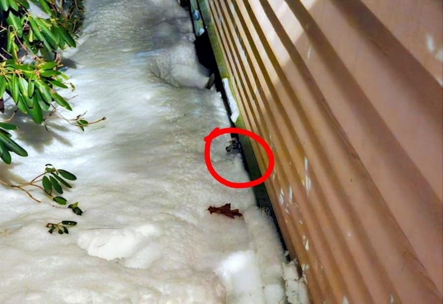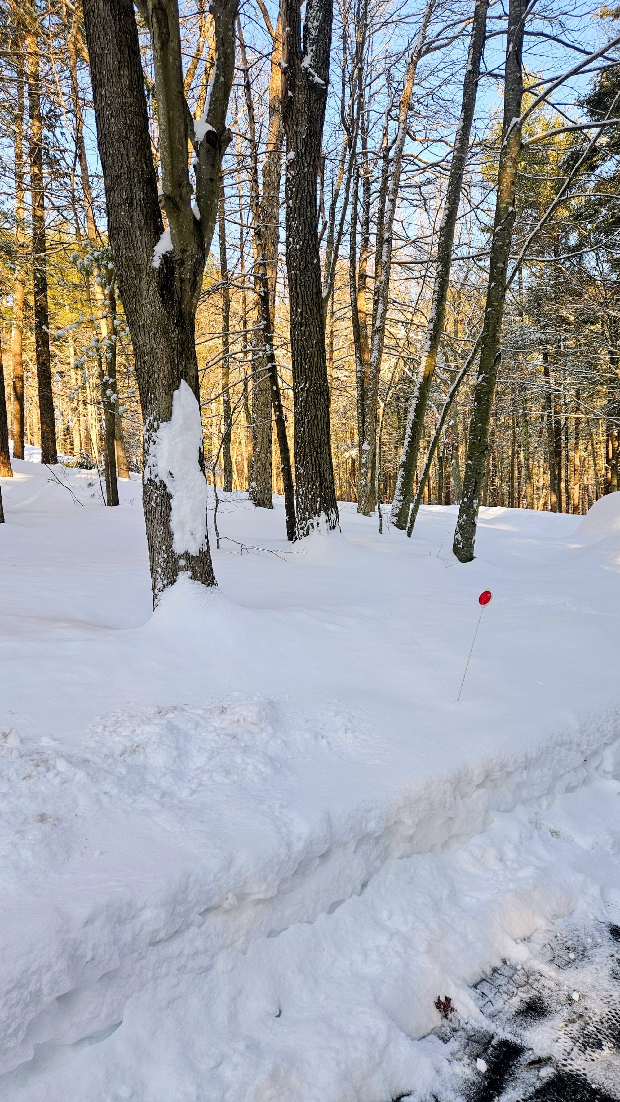 The last photo shows the feet of snow covering the area across the driveway. We need all the space to the tree in order to swing our RV out of its parking spot.