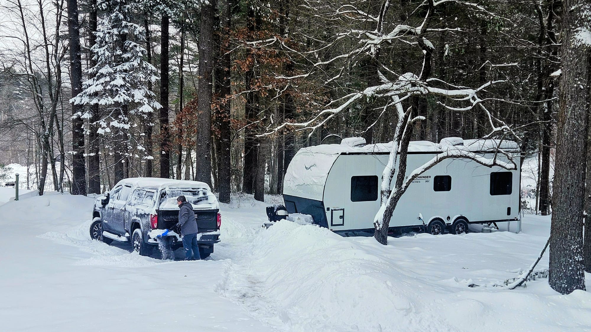 We had to face the fact that we were snowed in. This was a new one for us. Even after some intense snowstorms in 2022, we were still able to leave on February 22. Records show that Winter 2022 saw 10 inches less snow than 2026 – and that's not even including the remainder of the 2026 season which hasn't happened yet at the time of writing this post. February is typically the snowiest month, but this year, we already hit record snowfall before the month even started. It wasn't just a matter of getting out of the driveway, either. The local roads between our home-base and the highway had so many snow banks, they caused the roads to become narrower. We struggled driving just Clyde on these roads. If we needed to tow, we would for sure be forced over the middle line, which is dangerous on the twists and turns of New England streets. If we needed a sign, this was it. Our bodies might be telling us to move, but our environment was telling us to stay still.