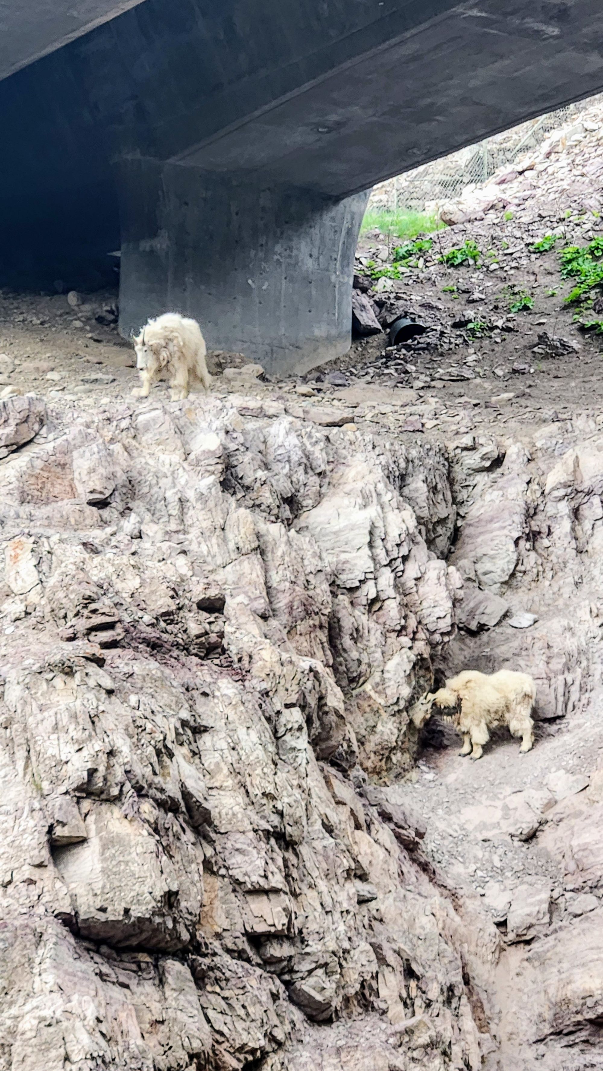 One animal we didn't have on our bingo card, which was a huge mistake because they're SO CUTE, is the mountain goat. We had our first sighting at the salt licks on the boundary of Glacier National Park. I was injured from a fall earlier that day, but still insisted on channeling my inner mountain goat and climbing the loose dirt on a cliff to get photos. Probably not the wisest idea, but I live to share the pics!