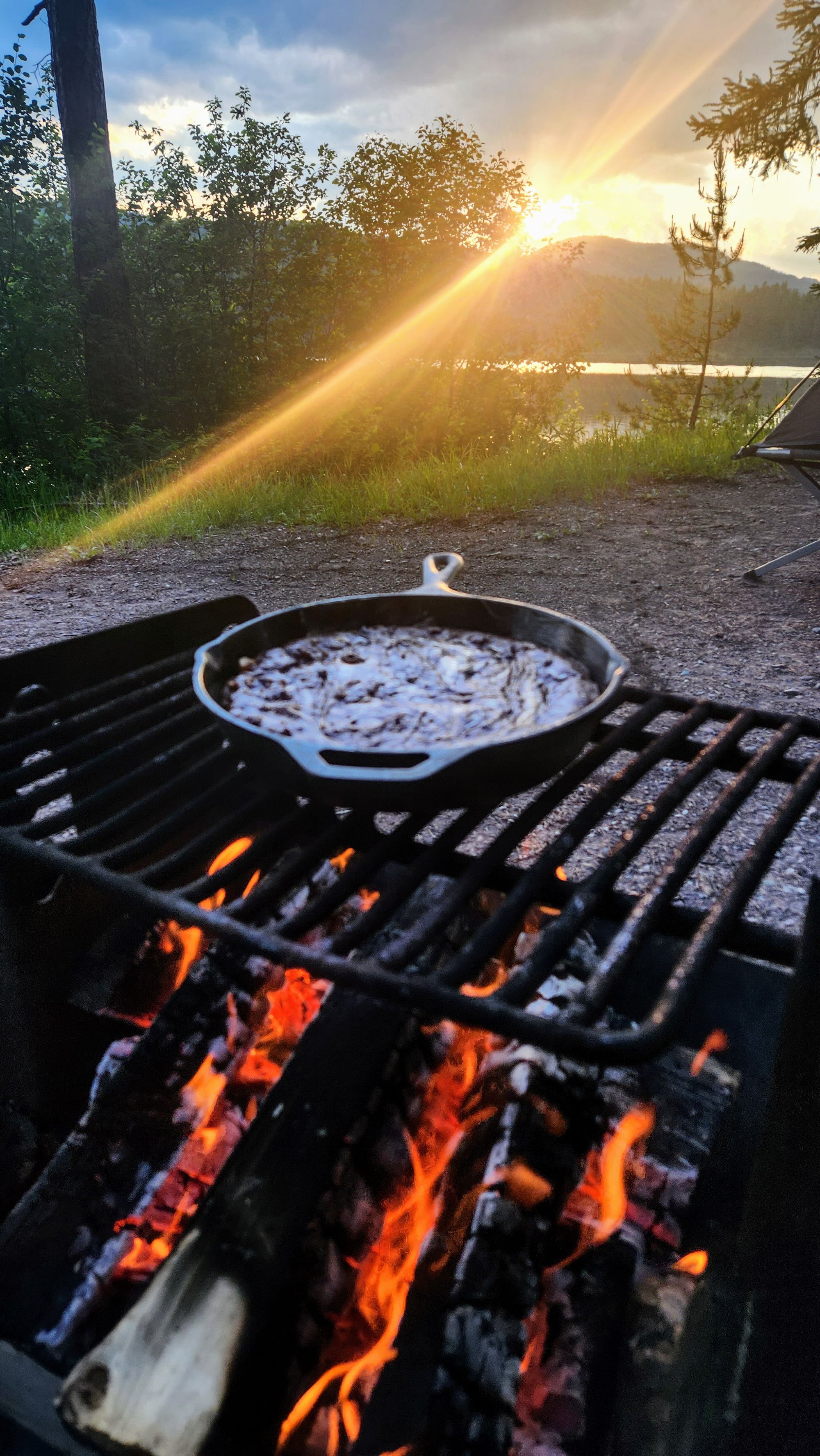After leaving Glacier, we made our way south in Montana. This is where we got our two magical back-to-back lake sites. When we were at Lolo, we attempted to cook campfire brownies for the first time. They look better than they tasted, but it was a fun experience. We've only tried to cook over the fire a few times in total. It's sometimes a success. It's more often not, probably due to the fact that we hardly ever practice. This was our only attempt at cooking over the fire all summer.