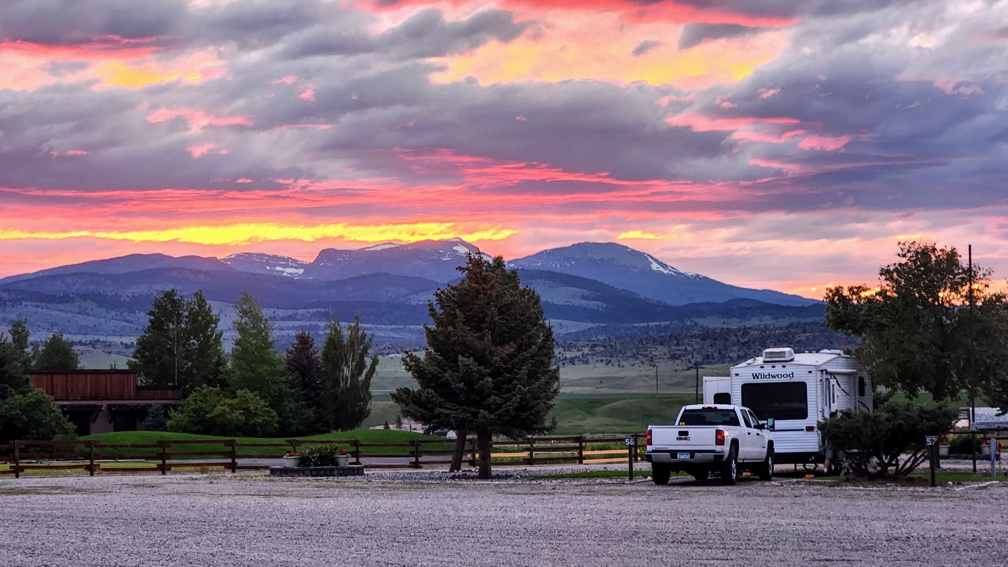 With so many scenic campgrounds, it's no surprise that we had ample opportunities to take gorgeous sunset pictures right from camp. There are too many to choose from, but I thought it made sense to document the sunset on our first night at Ennis RV Village in Montana. It's an RV park that didn't make the list of campsites with a view, but it certainly put on a show for us that evening!