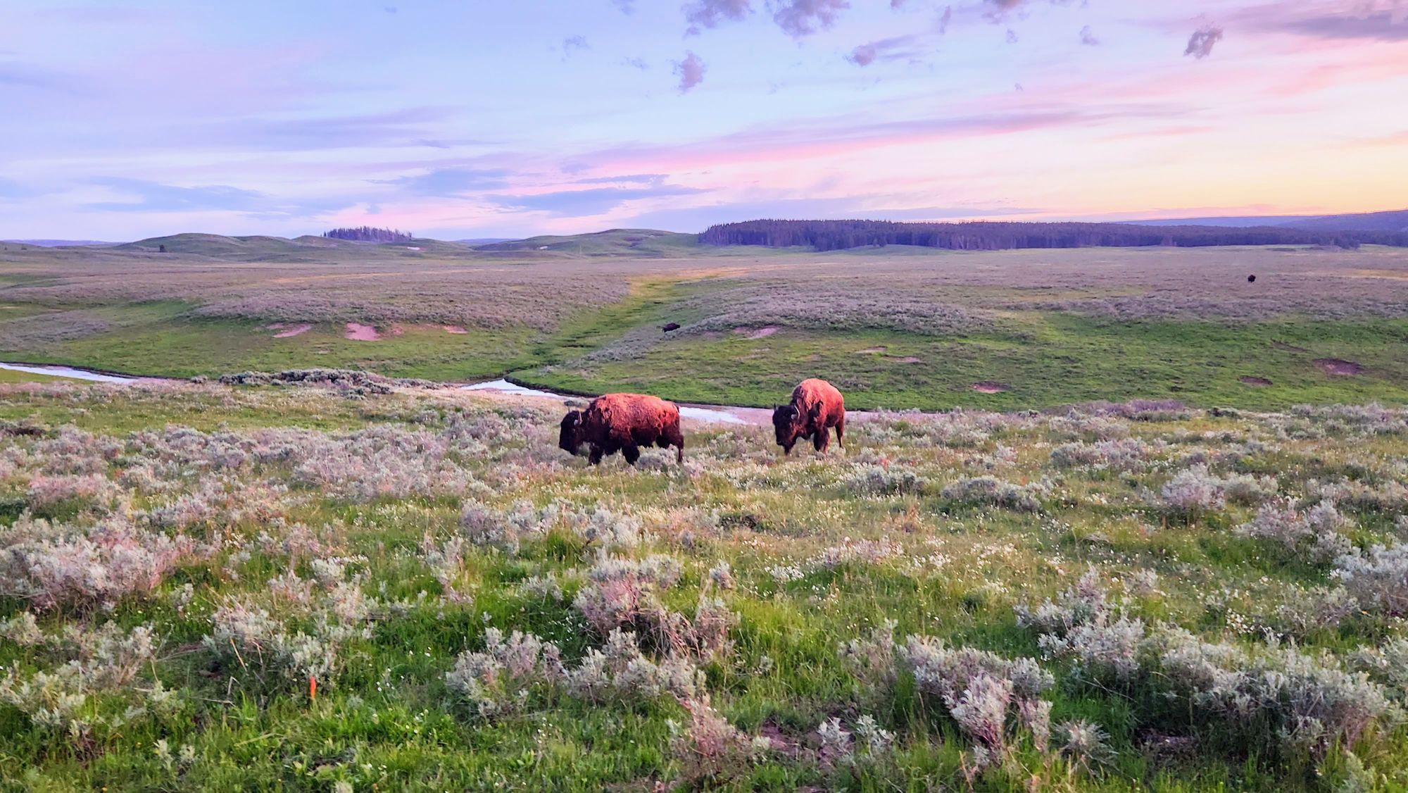 Then we have our first real bison jam! This is the one at Yellowstone that lasted straight through sunset, and the source of my favorite sunset photo.