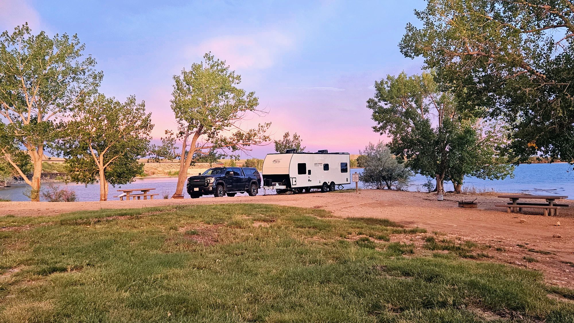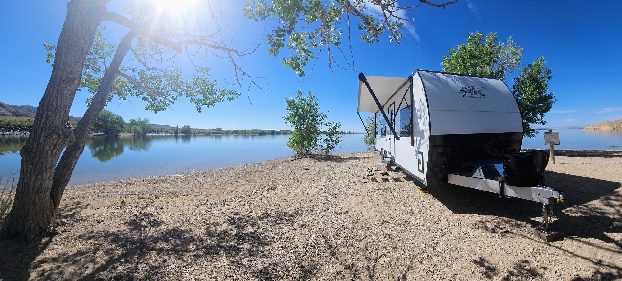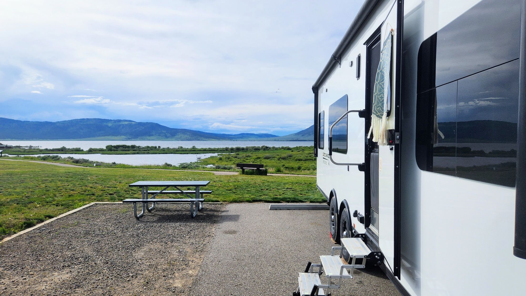 Of course, not all is picture-perfect, even in campgrounds this beautiful. We had our fair share of struggles at many of these locations, particularly in Wyoming when we mostly boondocked. We left our dispersed camping site early due to neighbors breaking the rules, severe heat, and even more severe bugs. Then we battled the heat for the next several weeks, mainly at Buffalo Bill, Boysen, and Arch Rock. Boysen was where we really had a dip in morale. We were in a spectacular setting, but the desert sun was beating down on us all day, every day. We couldn't do much outdoors, so one night, we decided there was no better time to check off a summer goal.