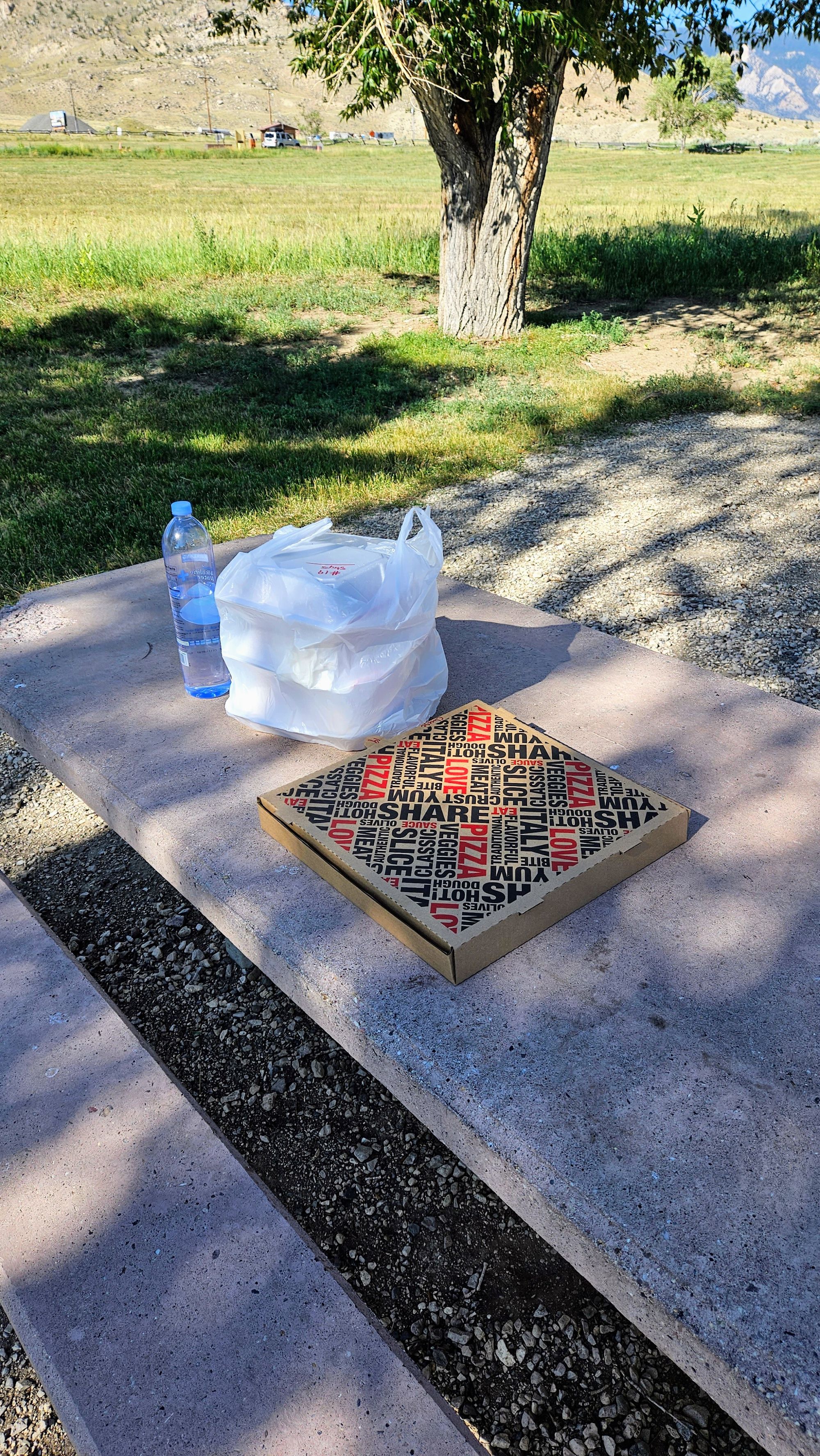 We waited until we were in a location that had pizza places with good reviews and good looking pictures. We had a few duds last year, so now we know to hold out for the good stuff. We ordered Wyo Dough pizza in Cody, WY and had our pizza picnic at our beautiful site at Buffalo Bill State Park. It was the only day where the weather was cool enough to want to eat hot food outside! We followed our picnic up with a double campfire, using our tabletop Solo Stove Mesa and the campsite firepit. If only every evening could have been filled with such pleasant outdoor affairs.