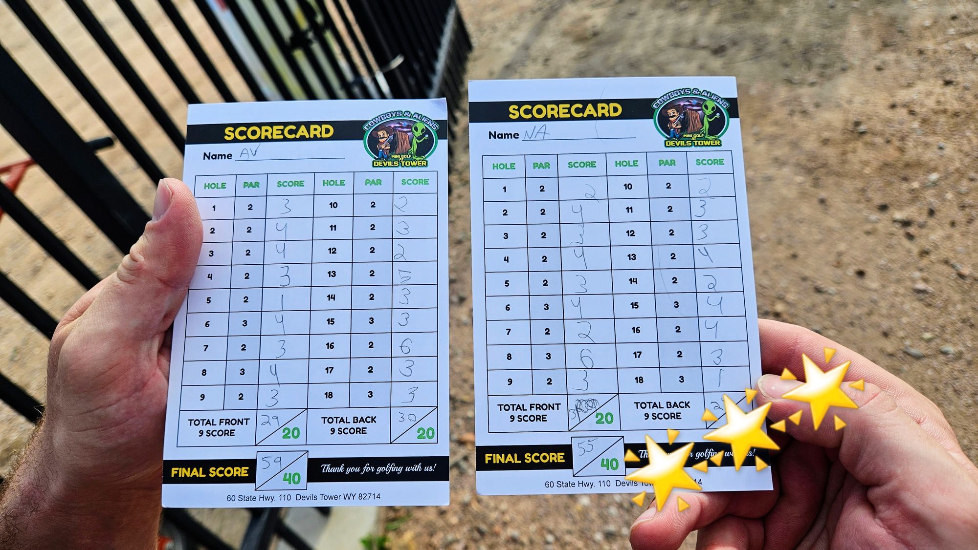 The Devils Tower KOA was also where we braved the heat for a round of mini golf. It was so convenient to not need to leave the campground, and we were only steps away from our trailer. Even better, the mini golf was free! The KOA was delayed in constructing their new pool, and so they offered free mini golf to all the campers. That was an even bigger win than my victory over Anthony!