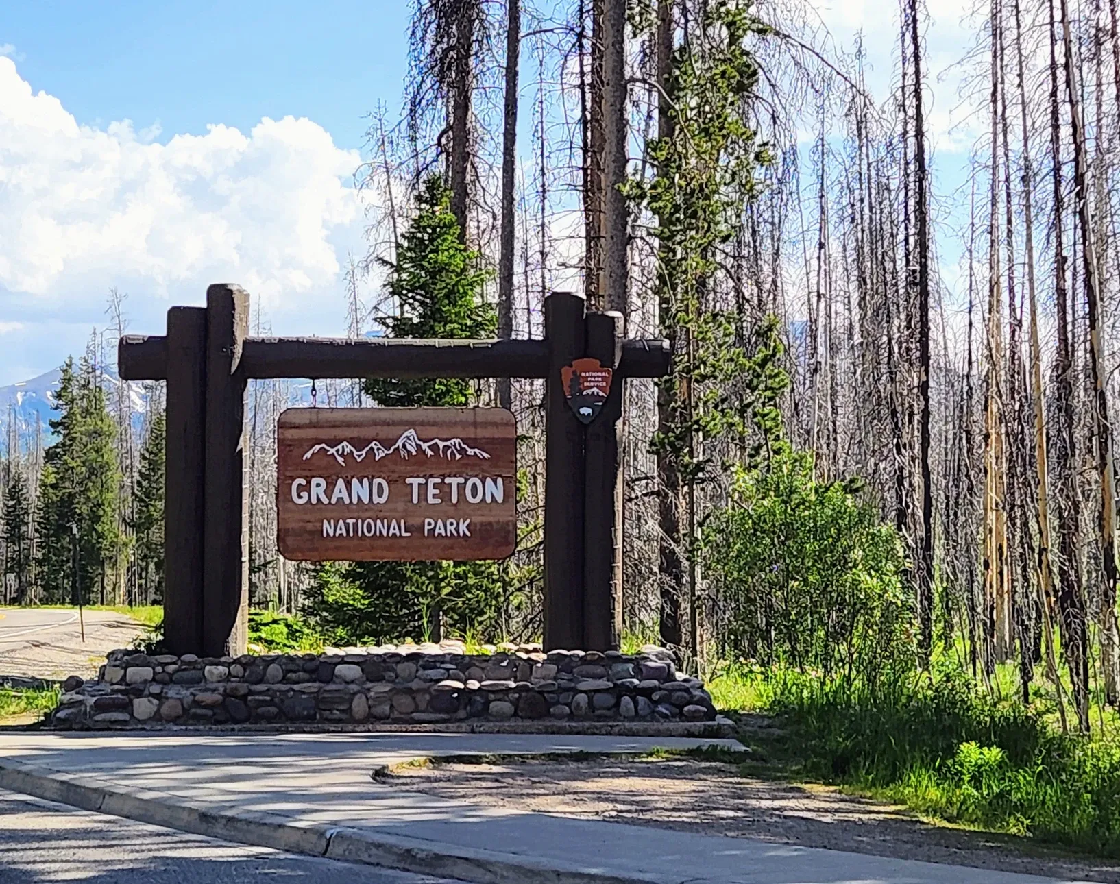 An offshoot near Jackson Lake took us to Colter Bay, which houses a popular marina. Then soon we hit the official end of the tour, the northern entrance welcome sign. Yellowstone's entrance would be only 30ish miles beyond that, giving us a real feel of just how close the two parks are, and how precious all this land is. We turned around in the welcome sign pullout, because otherwise soon the Yellowstone Lake magnet would pull us again, and we weren't about to go there. We still had lots more driving to do.