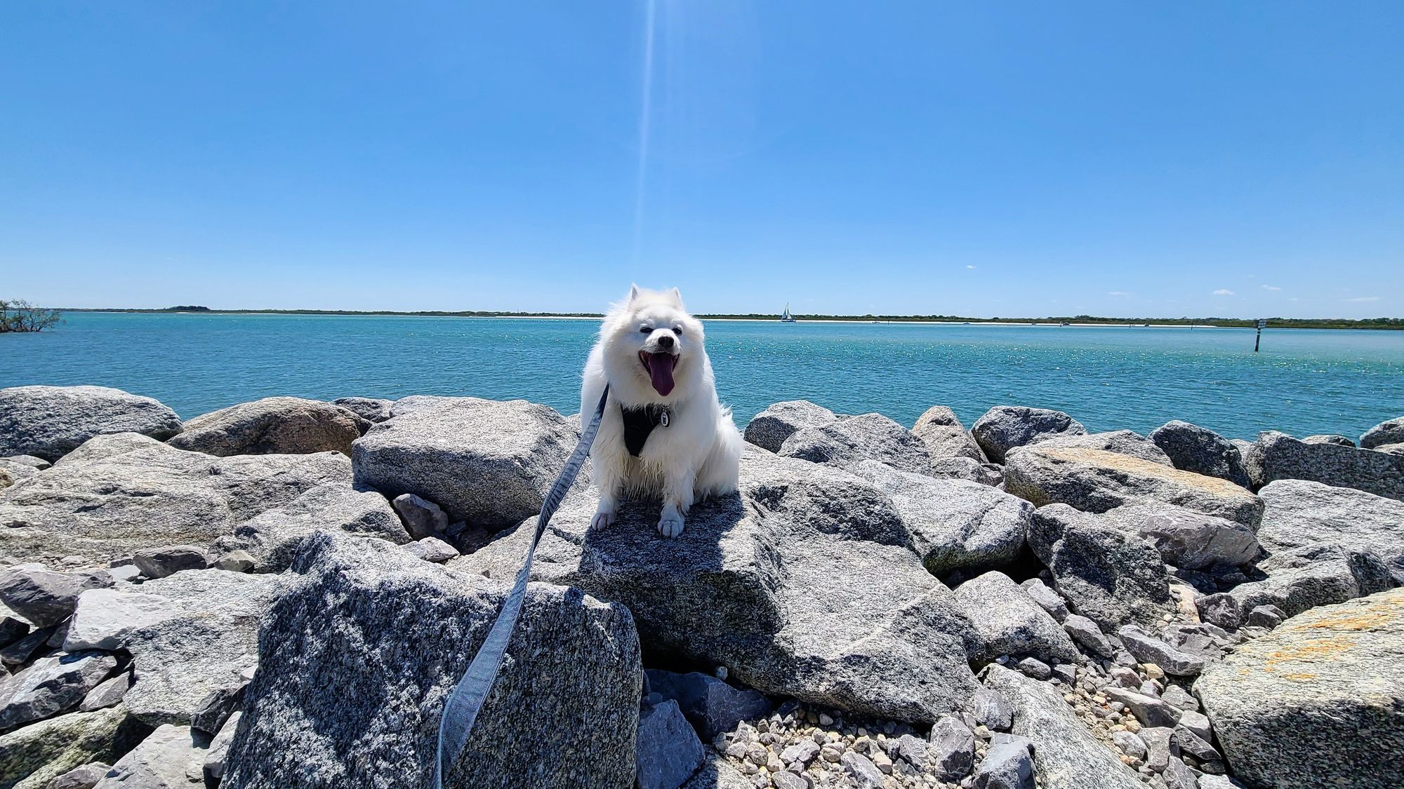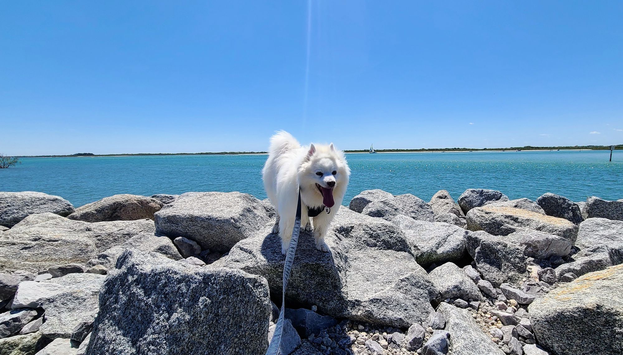 Once we finished our meal, we took Tanny for a walk around the park. When we saw the dog beach in 2017, we were excited to see all the pups, but never in a million years would I have thought we'd be bringing our dog to that beach! Granted he doesn't swim, but he did go in up to his shins, which is deep for him!