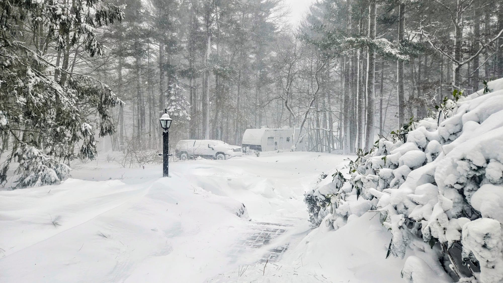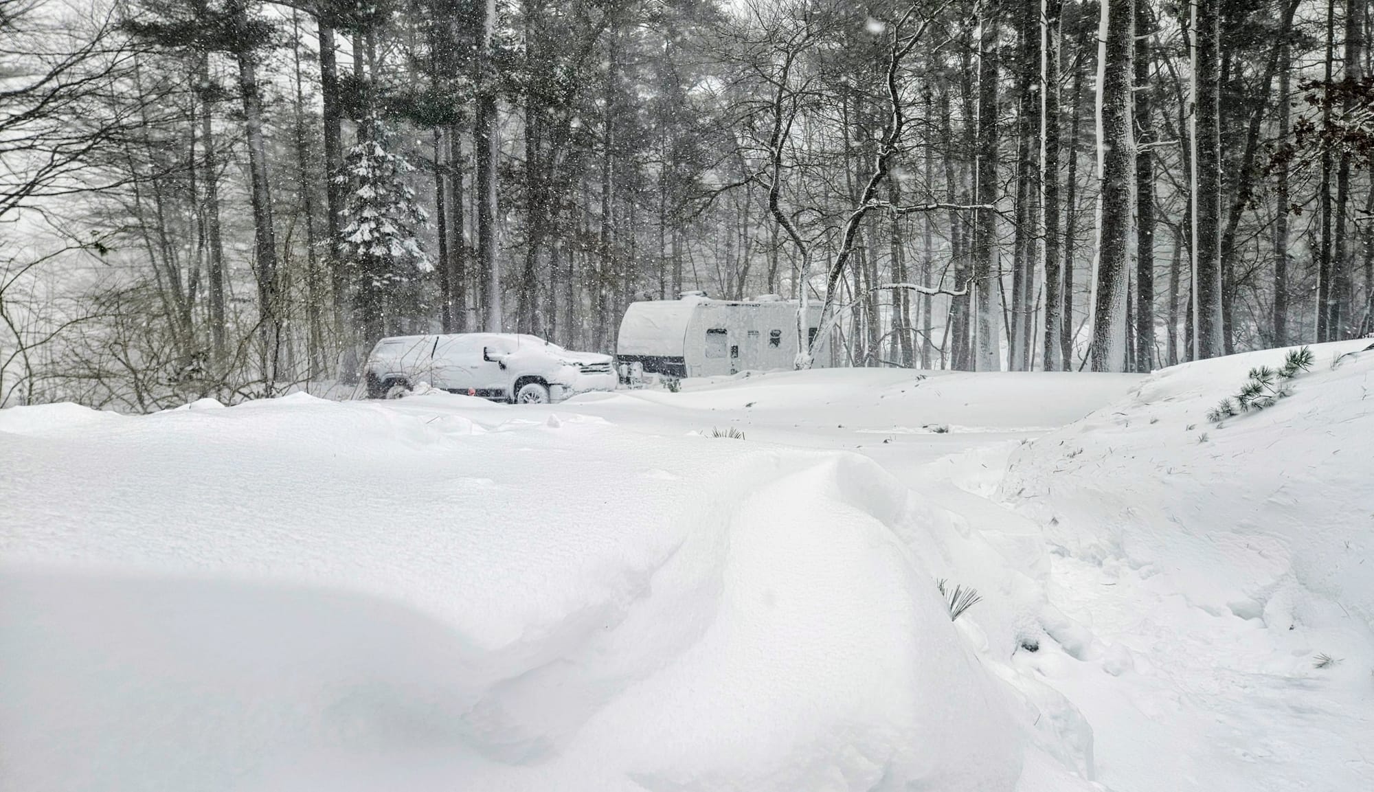 Before we get into our recap of this storm, we need to put a few things into perspective. Lots of non-New Englanders think that winter is this bad every year. It's not. We used to experience about 1 big snowstorm per year on average, plus a couple of smaller but noteworthy storms. Then in the past decade, the big snowstorms were few and far between. On average, coastal Massachusetts – where our home-base is – receives between 2 and 3 feet of snow per year. We had already reached that total before this blizzard hit. We always had our reasons for escaping the North before February – it is our snowiest month. However, this winter was unprecedented. Some areas reached snow totals higher than recorded ever. At times, snow was falling at 4 inches per hour. Our home-base hadn't been hit this hard since we began RVing, and we just happened to be here for the mayhem.