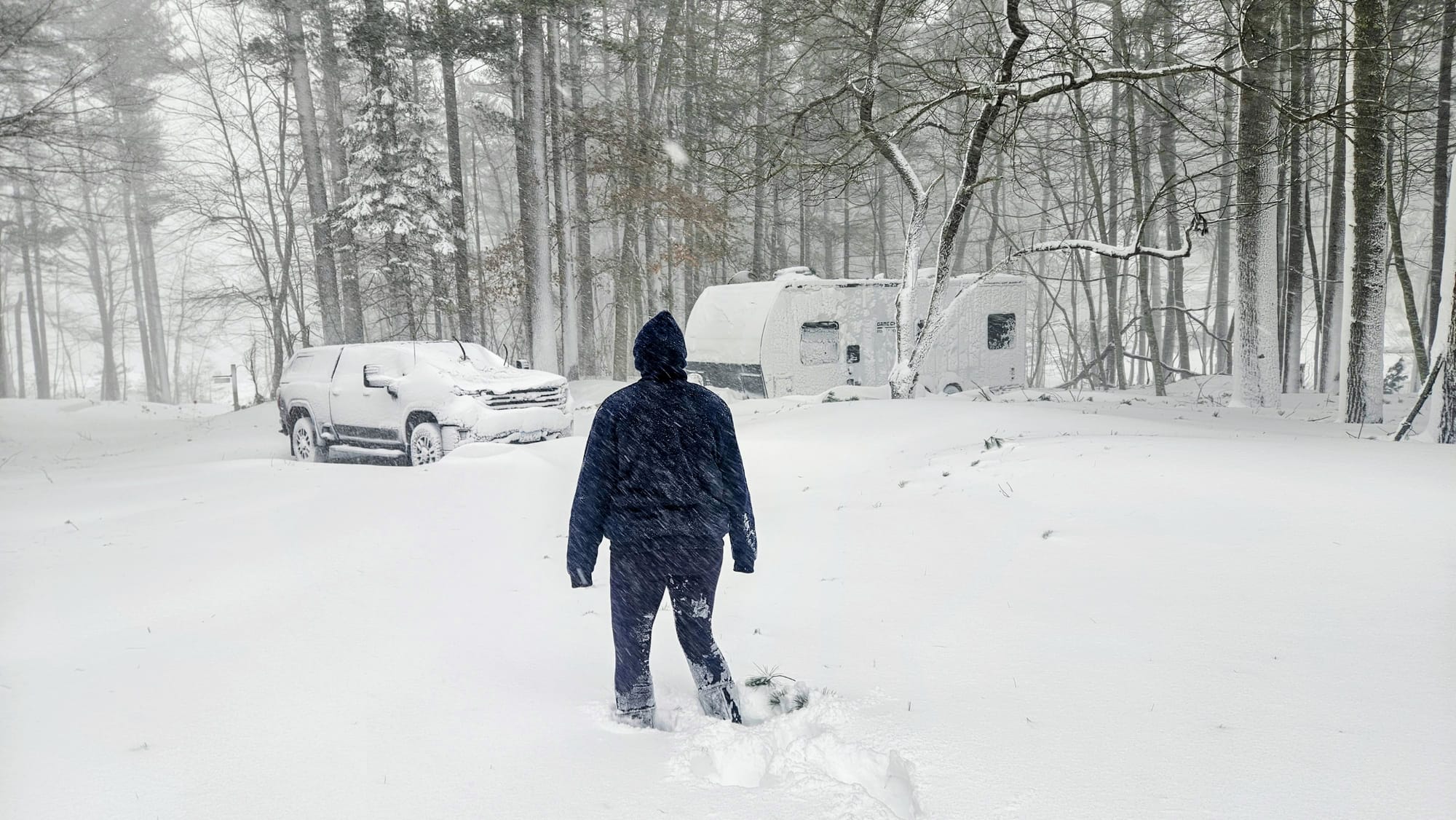 On the home front, the house remained without power for 47 hours. Buggy served as a charging station, food truck, and cafe for Nicole's parents. That day, it snowed some more, just a dusting, but enough to add slipperiness to the remaining packed-down blizzard snow. It was nothing compared to the blizzard, but it did feel like a little middle finger from nature, letting us know we weren't out of the woods yet!