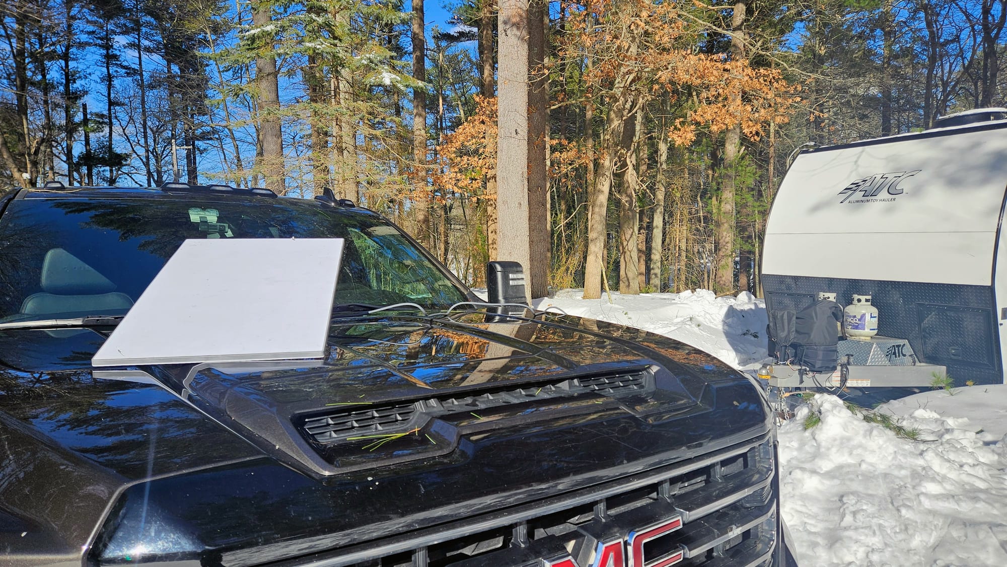If you're wondering why we set Starlink up in the backyard in the first place, it was so we could use the house power and have the clearest view of the sky. Our parking spot is nestled in the trees, and in order to get unobstructed views, we would need to place the dish in the driveway. Since we certainly couldn't do that now, we opted for the next best thing: placing it on the truck. At this point, we would take interruptions over the alternative: no internet at all.