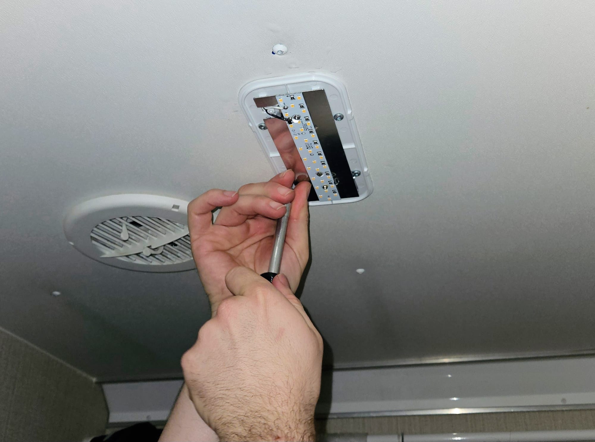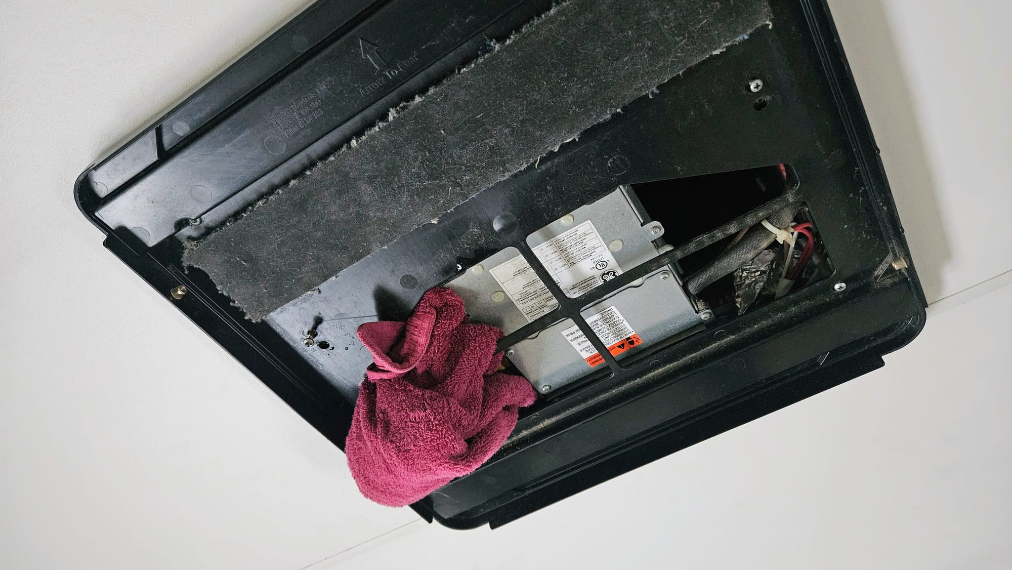 Remember when we said one leak was getting off easy? Turns out, we weren't so lucky. As we spent more time in the RV, we found 2 more leaks: one coming through the bedroom AC unit, and one dripping down our kitchen wall. For the AC leak, we removed the Wacko AC silencer and filter and placed a towel inside the unit. At least we won't be needing to use AC for a while! For the wall leak, we checked the nearby cabinets to make sure nothing was getting wet, but inside the cabinet was bone-dry. This was good news; the crack was likely right at the edge of the roof and causing drips along the edge. That leak is the smallest of them all, so we're just keeping an eye on it and sporadically wiping the wall dry.