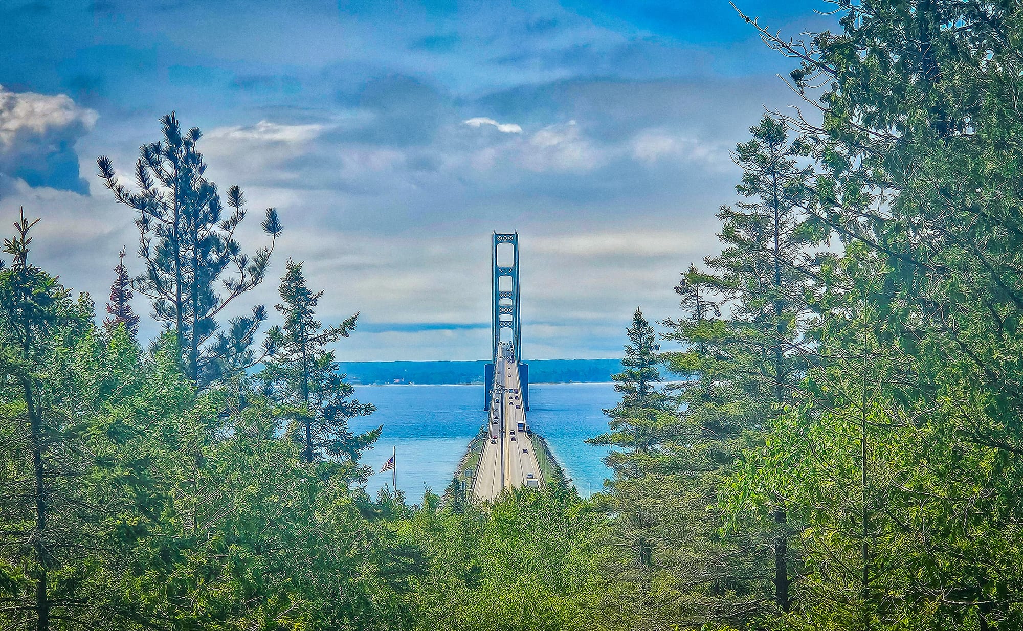Then we made our way east and camped at Straits State Park, right on the Straits of Mackinac. This state park had some nice trails right from the campground loops. We always appreciate this, especially when we're challenging ourselves to tackle a bunch of miles. We saw some great views of the Mackinac Bridge from these trails.