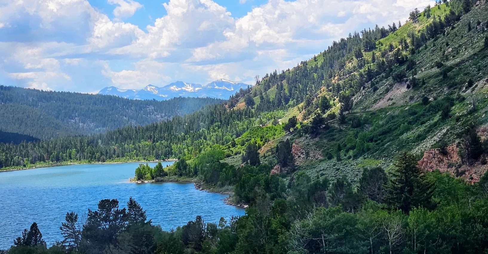 We were excited about our chosen site, but I'm a major optimizer, so I wanted to keep looking to see if any of the other areas had anything better. Like I said, we had a few options here and there, but 21A made the most sense. We spent about 3 hours scouting in total, within about a 20-mile radius, but scouting really just turned into a fun way to explore off-the-beaten-path parts of the Tetons. Expectedly, some of the forest roads were extremely bumpy. It hadn't rained in weeks so thankfully we didn't need to deal with washout, but we still had some moments where we felt like we were more on an off-road adventure. But, looking past the bumps, we saw some incredible views of the Tetons. Then, on one last stop on a side road in Kelly, WY, we found whole new terrain, with more ironized mountains showing off their red layers, and Slide Lake, a paradise for floating, my new favorite passion! There is a campground over there that's first-come, first-served, and we went down there to check things out. There were some empty spots that we could have squeezed into, but we needed to stick with our mission, and our mission was to dispersed camp for free. We weren't about to abandon that experience just for a chance for me to float, as tempting as it was.